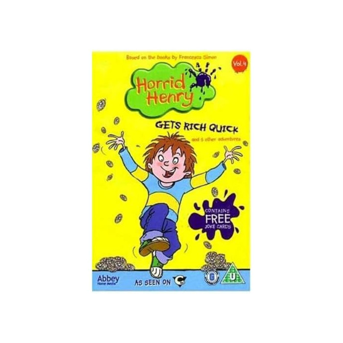 Horrid Henry s'enrichit rapidement et 5 autres aventures ! Horrid Henry est de retour et sème le chaos dans ce dernier DVD de la série à succès Horrid Henry de CITV, inspirée des best-sellers de Francesca Simon. Dans cette collection d'épisodes hilarants, Horrid Henry voyage dans le temps, se transforme en détective et tente même d'être parfait comme Peter pendant une journée, mais ses plans machiavéliques ne se déroulent pas toujours comme prévu… Ce DVD contient un jeu de CARTES BLAGUES GRATUITES.