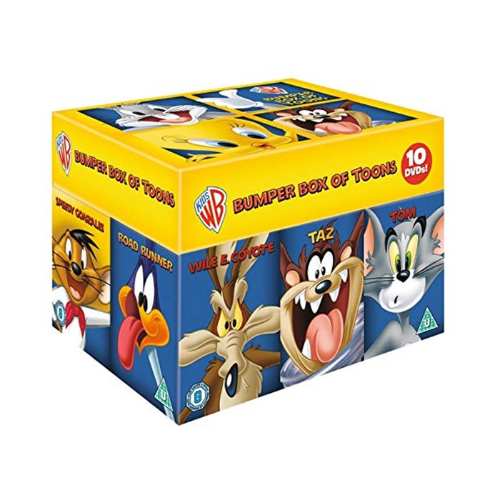 Coffret de 10 DVD de Looney Tunes contient : - Bugs bunny 112 minutes - Daffy duck 95 minutes - Porky pig 71 minutes ( uniquement anglais pour ce titre ) - Road runner ( anglais pour ce titre ) - Speedy gonzales ( anglais pour ce titre) - Taz 81 minutes - Tom et Jerry 94 minutes - Tom et Jerry 89 minutes - Tweety pie ( anglais pour ce titre) - Wile e . Coyote 87 minutes Langues : Français, Espagnol, Allemand, Italien et Anglais Anglais pour 4 titres mentionnés entre parenthèses