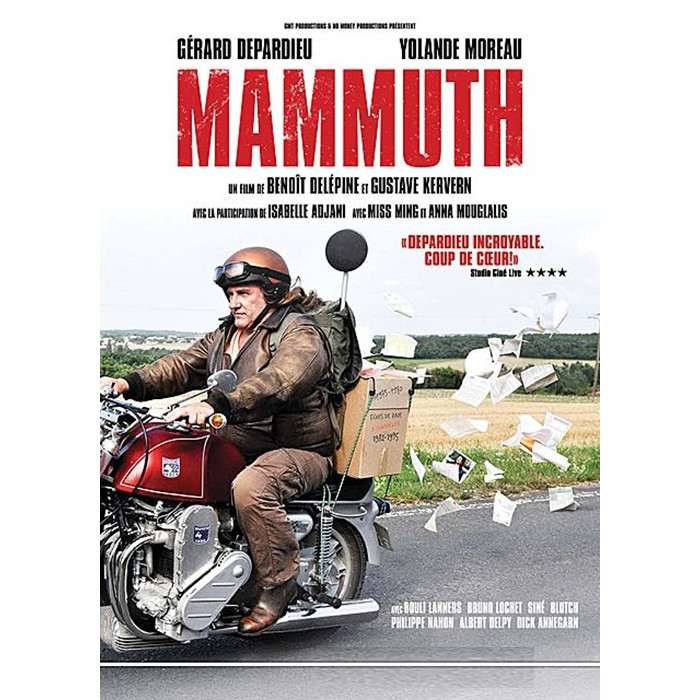 L'heure de la retraite a sonné pour Serge Pilardosse (Gérard Depardieu), employé d'une entreprise de charcuterie. Mais si cet homme, sur le marché du travail depuis l'âge de seize ans, n'a jamais connu de période de chômage, il lui faut pour toucher sa retraite à taux plein, récupérer quelques fiches de paie auprès d'anciens employeurs. Poussé par son épouse (Yolande Moreau, hilarante.), Serge enfourche sa moto, une vieille Münch Mammut (qui lui vaut son surnom de "Mammuth"), et s'en va sillonner les routes à la recherche de ses papiers manquants. Cousu sur mesure pour Gérard Depardieu par les trublions Gustave de Kervern et Benoît Delépine ("Groland", "Louise Michel"), "Mammuth", ouvre totalement anarchiste, se veut une ode à la liberté. Le film débute sous les meilleurs auspices (avec la scène hilarante du pot de départ de Serge), et promet une satire sociale des plus grinçantes. Que nenni ! La quête de fiches de paie de l'infortuné Serge (Gérard Depardieu en mode "The Wrestler") se mue en un road movie des plus glauques, prétexte à des rencontres de paumés, des séquences douteuses, et ponctué par des apparitions d'une Isabelle Adjani fantomatique et ensanglantée. Certains (dont beaucoup de critiques français) ont été sensibles à la poésie surréaliste et à la mélancolie de ce pied de nez aux conventions et à la bêtise, filmé de manière incontestablement audacieuse. Pas sûr que le grand public soit aussi enthousiaste.